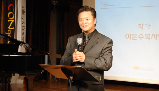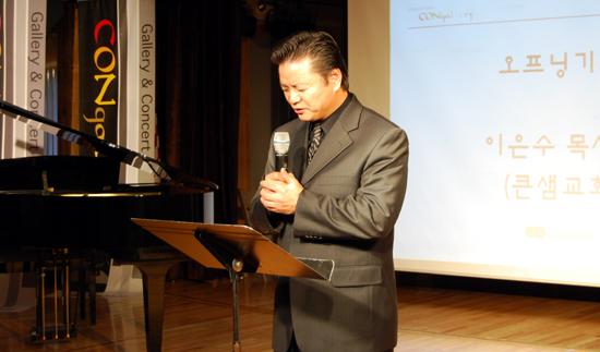 | ▲오프닝 기도를 이은수 목사(큰샘교회)가 맡았다. 이 목사는 특별찬조출연으로 2점의 사진을 전시했다. | |