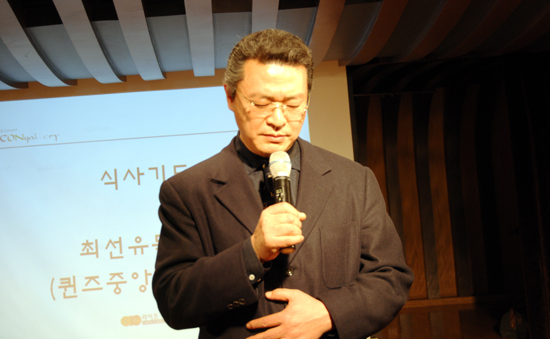 | ▲오프닝 행사이후 식사에 앞서 최선유 목사(퀸즈중앙장로교회)가 기도했다. | |