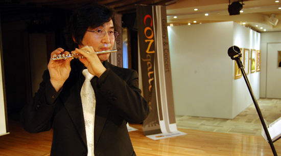 | ▲저녁 8시부터는 콘서트가 진행됐다. 14일은 Jesse You(flutist), 박은주(찬양사역자), 최혜련(Pianist) 씨가 무대에 섰으며, 사진은 Jesse You씨의 공연 모습. | |