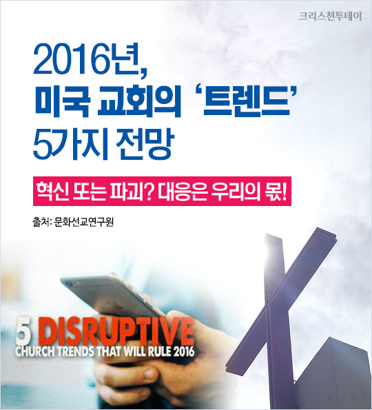 [카드뉴스] 2016년 미국 교회의 5가지 트렌드Feb 21, 2016 09:12 PM PST
