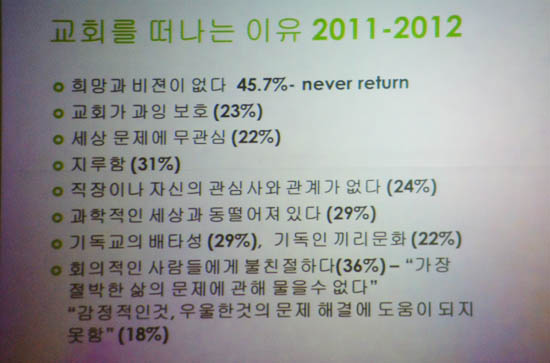 최근 발표된 라이프웨이 리서치 결과, 교회를 다니는 사람들 중 19%만이 매일 성경을 읽는 것으로 나타났다. 이는 예배 시간을 제외하고 성경을 전혀 읽지 않거나 거의 읽은 적 없다고 응답한 비율(19%)과 동일한 수치다. 한편 응답자의 36%는 성경을 (예배 외에) 1달에 1번 이상 본다고 응답했다.Sep 12, 2012 01:12 PM EDT
