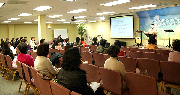 18일(수) 여성모임 ‘에제르’가 열리고 있는 열린문장로교회(담임 김용훈 목사)를 찾았다. 매주 수요일 열리고 있는 ‘에제르’에는 지도 목사 김성호 목사(가정사역 담당)가 30분 간 말씀을 전하고, 소그룹 모임으로 나눠 QT로 느낀 점과 삶의 아픔과 기쁨을 함께 나누고 있다. Jan 19, 2012 11:36 AM EST