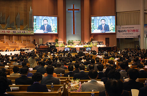 기독교대한하나님의성회(이하 기하성) 여의도측(총회장 이영훈 목사)과 서대문측(총회장 박성배 목사)의 통합이 보류됐다. 양측은 16일 각각 정기총회를 개회해 통합안을 결의한 뒤 통합총회를 개최할 계획이었으나, 여의도측에서 통합 보류를 결의하면서 무산됐다. May 16, 2011 08:41 AM PDT