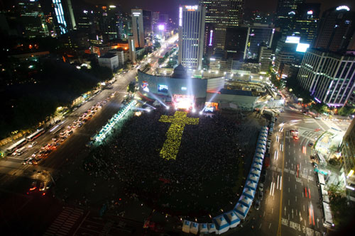 한밤의 십자가 불빛은 어두운 세상을 밝히는 ‘빛등대’인가, 아니면 밤잠을 설치게 만드는 ‘빛공해’일 뿐인가. May 11, 2011 08:42 AM PDT