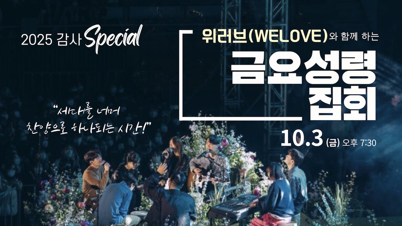 찬양팀 WELOVE가 ▶10월 3일(금) 7:30 감사한인교회에서, ▶10월 5일(주일) 2시, 4시에는 얼바인온누리교회에서 집회를 인도한다.