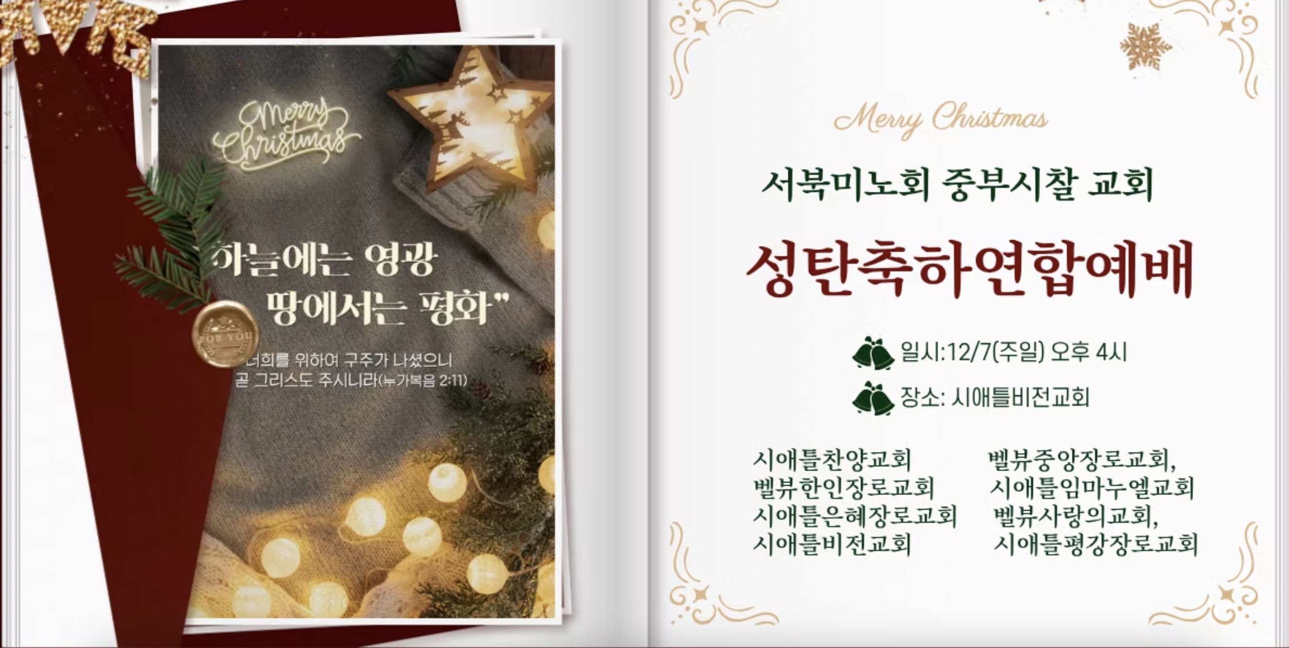 참여 교회 목회자들은 "성탄의 소망을 나누며, 서북미노회 중부시찰 한인 교회들이 연합해 하나님께 영광 올려드리는 뜻깊한 시간이 되고자 한다"고 전했다.