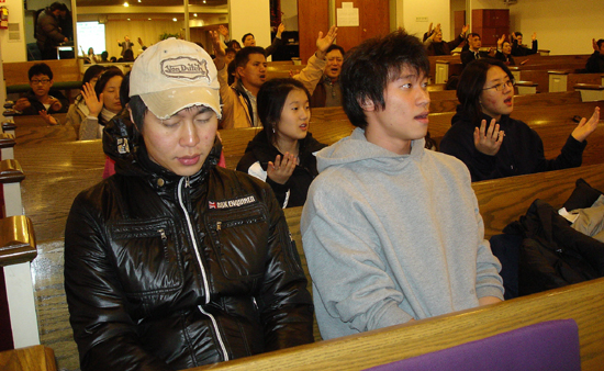 ▲기도하는 목양교회 교인들