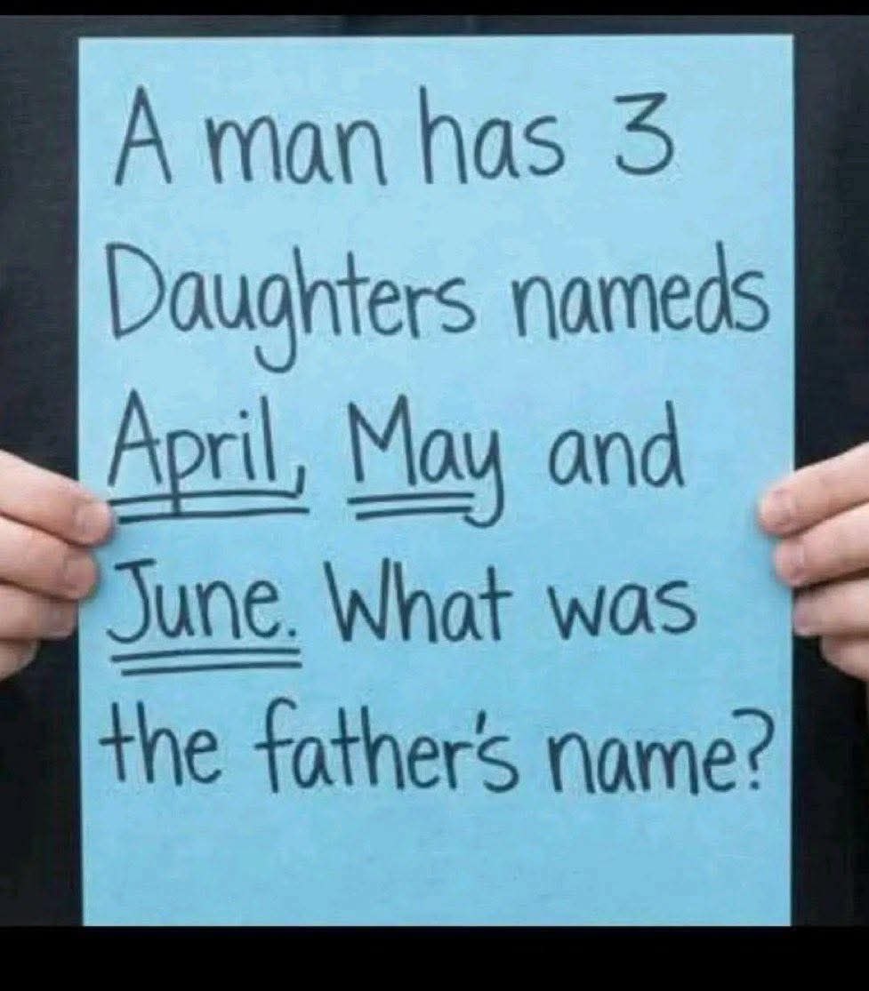 “A man has 3 daughters named April, May and June. What was the father’s name?”