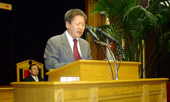 ▲동북노회 목회자들이 나와 각 교회 제직들에게 인사를 했다.