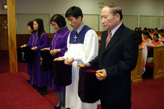▲노회 회계 손인종 장로가 헌금기도했다.