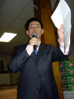 ▲새소망교회 서기철 목사가 2부 만찬과 친교를 진행했다.