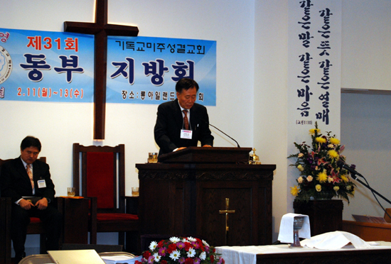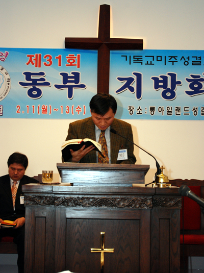 한편, 개회예배는 동부 지방회 부회장 조태연 목사(보스턴 중앙성결교회)의 사회로, 부회장 정순철 장로(롱아일랜드성결교회)가 기도를, 부서기 송평구 목사(보스톤제일교회)가 성경봉독을 회장 김재철 목사(롱아일랜드 성문교회)가 '예수님의 옷자락을 만져라(막5:25-34)'는 주제로 말씀을 전했다.