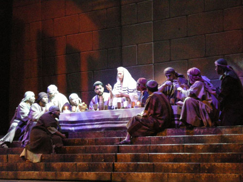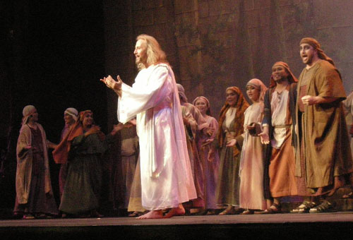 공연은 2부로 나눠 진행됐으며 1부는 총 14막 ▲예수의 탄생을 예언하다 ▲가브리엘, 나레이터의 등장 ▲예수의 탄생 ▲세례요한에게 세례를 받는 예수 ▲광야의 시험 ▲제자들과의 만남 ▲예수님과 군중들과의 대화 ▲주를 노래하며 찬양 ▲니고데모와의 대화 ▲폭풍의 바다 ▲시장에서의 기적 ▲불안해 하는 바리새인들 ▲자신의 죽음을 암시하는 예수님 ▲죽은 나사로를 살리시는 예수님으로 진행됐다.