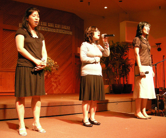 | ▲(왼쪽부터)김옥희 찬양 사역자, 제윤정 찬양 사역자, 김지현 찬양 사역자 | |