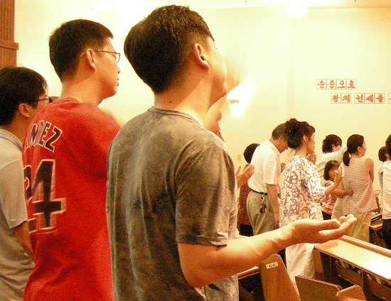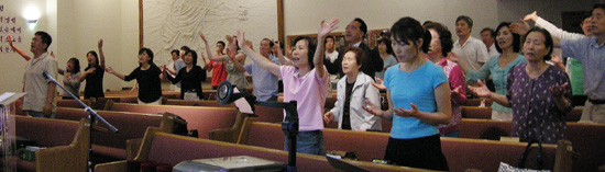 | ▲콘서트의 막바지에 성도들이 손을 들고 중국과 미얀마 이재민을 위해 기도했다. | |