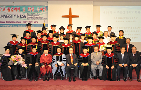이사장 김연도 박사 사회로 드린 이날 졸업식은 이완수 장로(예장합동 부총회장)의 기도, 이성택 목사(예장합동 회록서기)의 성경봉독, 총신USA 코랄 찬양, 이기창 목사(예장합동 총회장)의 설교, 전철영 목사(교학처장)의 학사보고, 김근수 총장의 학위 수여, 고영기 목사(예장합동 서기), 황규철 목사(예장합동 총무)의 격려사, 하귀호 목사(세계선교회 이사장), 김재호 목사(세계선교회 부이사장)의 축사, 송환규 목사(재미한인예수교장로회 합동 총회장)의 축도로 진행됐다.