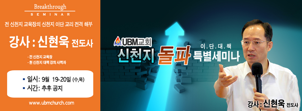 이번 세미나는 오렌지카운티교회협의회가 후원하고 UBM교회(앤드류 김 목사) 주최 하에 열린다. 일정은 19일(수) 오후 8시부터 20일(목) 오후 8시까지다.