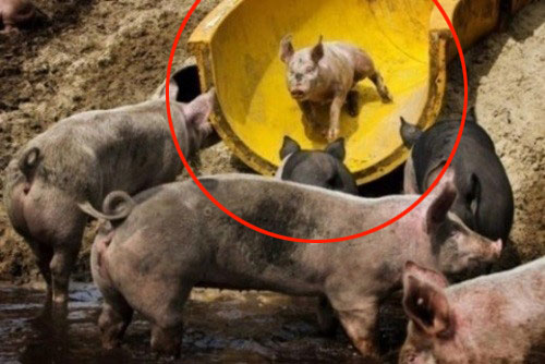 이 슬라이드는 네덜란드 한 농부가 자신이 키우는 돼지를 위해 설치한 것으로 워터파크에서 착안했다. 이 슬라이드는 인근 수영장에서 직접 돼지를 위해 구입, 농장에 설치했다.