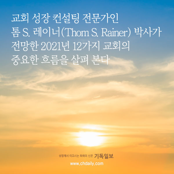 교회 성장 컨설팅 전문가인 톰 S. 레이너(Thom S. Rainer) 박사가 전망한 2021년 12가지 교회의 중요한 흐름을 살펴 본다. 1. 이중직이 대규모로 증가하며, 교회 내 정규직원 감소가 점점 흔한 일이 될 것이다. 2. 대다수의 교회에서…