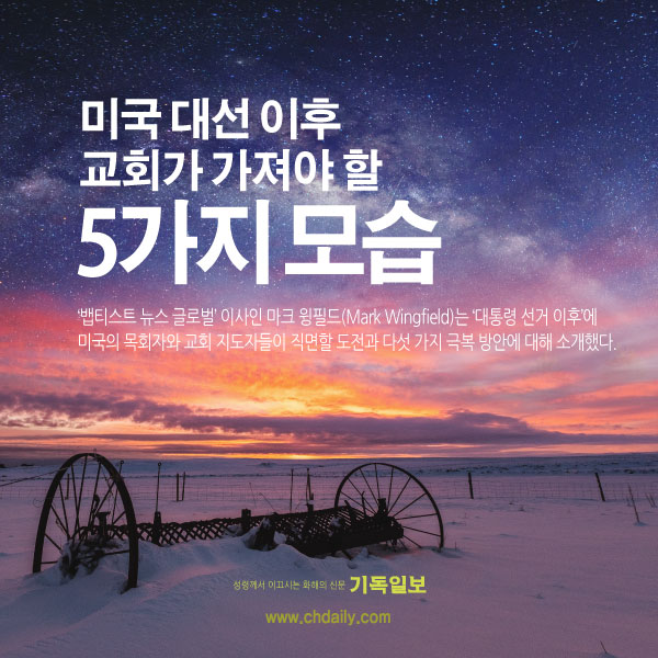 '뱁티스트 뉴스 글로벌' 이사인 마크 윙필드(Mark Wingfield)는 '대통령 선거 이후'에 미국의 목회자와 교회 지도자들이 직면할 도전과 다섯 가지 극복 방안에 대해 소개했다.