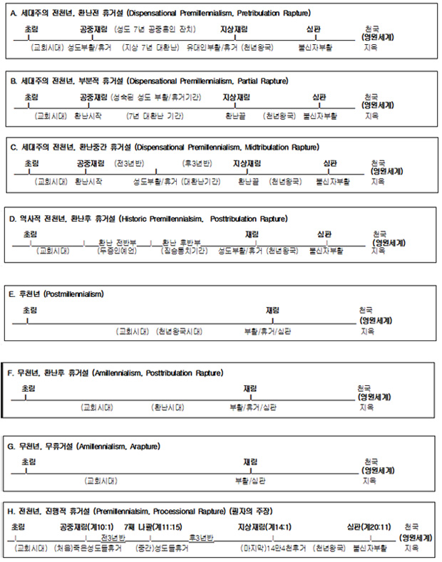 계시록을 어떻게 보느냐에 따라서 여러 가지 학설들이 있다. 그러나 분명한 것은 계시록은 요한의 계시가 아니요, 예수 그리스도의 계시이며 이 계시는 장차 반드시 이루어 질 일들을 기록한 책이다(계1:1). 그리고 이 계시의 말…