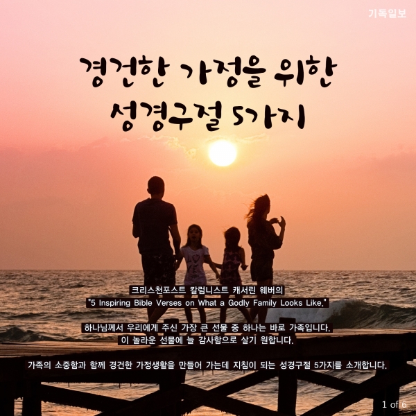 하나님께서 우리에게 주신 가장 큰 선물 중 하나는 바로 가족입니다. 이 놀라운 선물에 늘 감사함으로 살기 원합니다. 가족의 소중함과 함께 경건한 가정생활을 만들어 가는데 지침이 되는 성경구절 5가지를 소개합니다