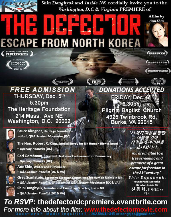 캐나다 출신 한인여감독이 만든 영화 '탈북자(The Defector)'가 12월 5일과 6일 워싱턴지역에서 두 차례 상영된다.