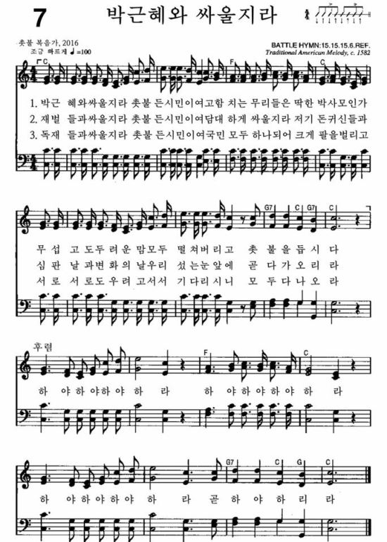 찬송 ‘마귀들과 싸울지라’를 ‘박근혜와 싸울지라’로 개사?