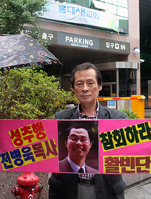 활빈단, 홍대새교회 앞 전병욱 목사 면직 촉구 시위