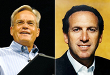 스타벅스의 최고경영자 하워드 슐츠(사진 우)가 미국의 대표적 대형교회인 윌로크릭교회에서의 강연을 하루 전날 돌연 취소하자 그 교회의 담임인 빌 하이벨스 목사(사진 좌)가 "윌로크릭교회는 반동성애 또는 그 누구에게도 …