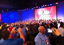 지난 17일(이하 현지시각) 개막한 제3차 케이프타운 로잔대회에 참여 중인 교인들이 함께 테이블을 나누고 있는 가운데, 중국에서 올 것으로 예상됐던 2백여 대표들은 이 자리에 모습을 드러낼 수 없었다.