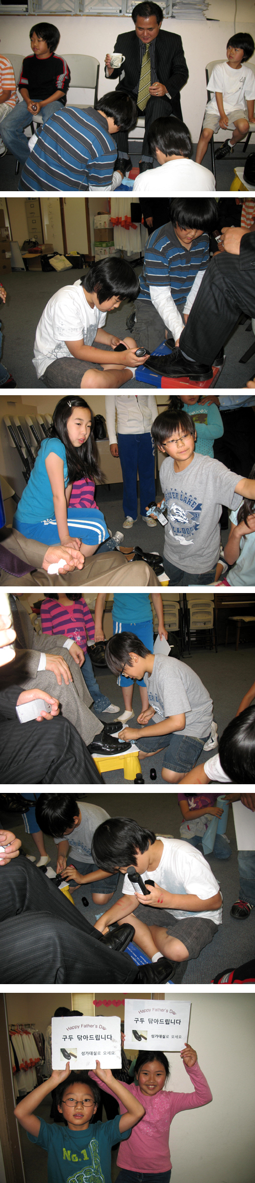 워싱턴주 각 교회는 지난 21일(주일) 파더스 데이를 맞아 아버지의 사랑과 헌신을 기념하며 축복하는 시간을 가졌다. 에버렛장로교회(담임 권혁부 목사) 유초등부 아이들은 아버지들의 구두를 닦으며 감사의 마음을 전했다.