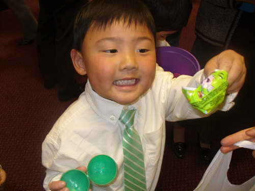 부활절을 맞아 각 주일학교에서는 에그헌팅 시간을 가졌다. 플래스틱 달걀 안에 초컬릿과 돌, 십자가, 성경구절 등을 넣었고 달걀을 찾는 아이들의 얼굴에는 연신 미소가 가득했다.