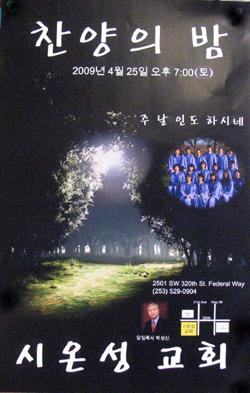 훼드럴웨이에 위치한 시온성교회(담임 박성신 목사)는 오는 25일(토) 오후 7시 찬양의 밤을 개최한다.