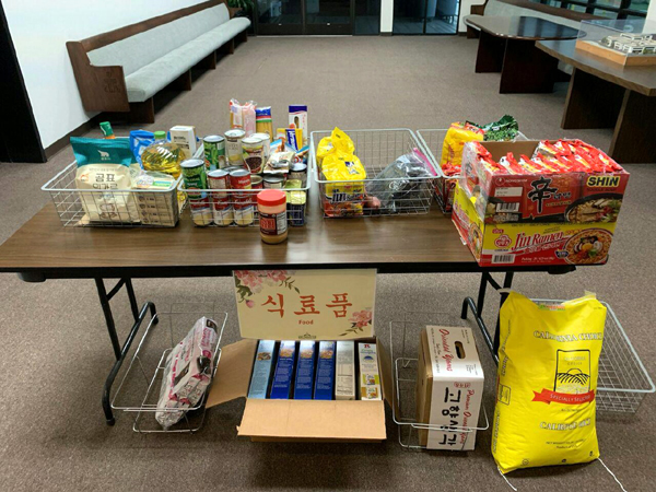 토랜스장로교회(담임 고창현 목사)가 교회 본당 앞에 마련한 오병이어 바구니. 교인들이 마음의 감동을 따라 이웃들과 나누길 원하는 식료품, 생필품, 보건용품 등을 놓아두면 필요한 사람들은 누구나 와서 가져갈 수 있도록 했…