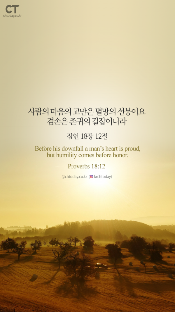 사람의 마음의 교만은 멸망의 선봉이요 겸손은 존귀의 길잡이니라